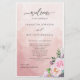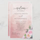 Elegante Wedding com caligrafia moderna escrita à mão. Capacidade de fazer alterações e ajustes de texto selecionando personalizar ainda mais. Frente com detalhes da cerimônia de casamento, volte com nomes de festa de casamento e obrigado que envie para seus convidados. Design com um fundo de lavagem a aquarela cor-de-pêssego atraente e detalhes florais numa bela mistura de tons de pêssego, roxo, lilás, lavanda, rosa. Sentimento moderno elegante. Parte da nossa coleção "Pastel Floral Alegre" com vários produtos de coordenação disponíveis.