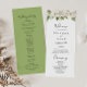 Este programa de casamentos florais de peônias de inverno branco é perfeito para um casamento simples. A design apresenta lindas peônias brancas desenhadas à mão, amontoadas em buquês imersos, com botões entrelaçados e folhas verdes.