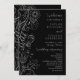 Este elegante programa de casamento apresenta um delicado design floral ornamental com flores, aves e folhas sobre fundo prateado e preto. O texto combina o script manuscrito e as fontes serif para uma aparência na moda e moderna. Perfeito para um casamento outono de inverno ou outono.