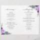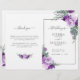 Aqui está o programa perfeito, elegante e dobrado para o seu próximo casamento. Este design apresenta lindas peônias e rosa em tons de roxo, lilás e violeta, juntamente com a vegetação foliar de eucalipto e uma falsa borda de folha de prata. Este programa tem muito espaço para todos os seus detalhes do programa de casamento. Todo texto é facilmente personalizado usando os campos modelo fornecidos. Veja a coleção de produtos complementares de suite de casamento. Se você tiver uma pergunta sobre design ou quiser ver este design em outro produto, por favor, sinta-se à vontade para entrar em contato comigo em jschmidtdesignworks@gmail.com. Design © Judith Schmidt.