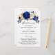 Elegante carta do programa de casamento do tema ouro azul real com elegante buquê de azul real, Marinho, ouro, flores amarelas do rosa e folhas de eucalipto. Entre em contato comigo para obter ajuda sobre a personalização ou se você precisar de outro produto com este design.
