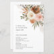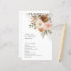 Preencha a papelaria do dia de casamento com um belo programa de cerimônias, com flores e verde em cores quentes.