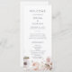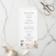 Este simples programa floral é perfeito para um casamento rústico. O design bicho-branco apresenta flores rosadas, rosas, burgundy e marsala rochosas e roxas rústicas. Inclua o nome da noiva e do noivo, a data e o local do casamento, a mensagem do obrigado, a ordem do serviço, a festa noiva e um memorial "em memória amorosa" opcional.