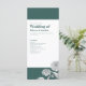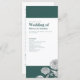 O cartão de programa de casamento em estilo vintage apresenta uma ilustração de arte de linha floral elegante de dália com uma paleta de cores esmeralda. Design tipográfico moderno e limpo, este cartão está pronto para você personalizar com os detalhes do seu dia especial. Por favor, explore o Conjunto de Casamento Floral Esmeralda Vintage para itens correspondentes.