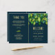 Design de casamento criativo com folhagem abundante desenhada à mão de uma forma moderna imitando textura metálica. Sombras de verde, ouro, cobre, platina, turquesa, azul escuro. Fundo azul profundo Dourada inscrição (ouro não é ouro real, mas cor). Fontes modernas simplificadas. Realmente único, envolvente e elegante. Para casamento outono, casamento de verão, casamento de jardim, ou qualquer tipo de casamento elegante moderno.
