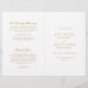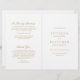 Programa de casamento dobrado em ouro legante (impresso em papel de médio porte e desdobrado) com um design simples e mínimo com os nomes da noiva e do noivo em uma fonte serif tradicional e o meio e sobrenomes em uma escrita elegante de caligrafia. Um estilo clássico que é perfeito para um casamento formal.