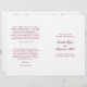 Programa de Casamento dobrado ao estilo clássico com palavras de sotaque em uma tipografia de caligrafia elegante. A frente tem seus detalhes de eventos, a dentro tem sua festa de casamento e ordem de cerimônia. O verso tem um modelo para a sua mensagem / aspas. Todo o texto é burgundy sobre um fundo branco e pode ser alterado para qualquer cor desejada clicando no botão "personalizar". Estes Programas de Casamento são perfeitos para um casamento formal.