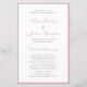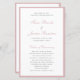 Simples programa de casamento orçamentário com uma borda fina junto com seus nomes e cabeçalhos em um roteiro elegante em cor-de-rosa empoeirado. O esquema clássico e tradicional faz esta design excelente para um casamento formal. Estes programas de casamento baratos são impressos em folhas de papel para uma opção econômica.