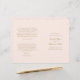 Programa de Casamento dobrado ao estilo clássico com palavras de sotaque em uma tipografia de caligrafia elegante. A frente tem seus detalhes de eventos, a dentro tem sua festa de casamento e ordem de cerimônia. O verso tem um modelo para a sua mensagem / aspas. Todo o texto está em dourado falso sobre um fundo cor-de-rosa pincelado e pode ser alterado para qualquer cor desejada clicando no botão "personalizar". Estes Programas de Casamento são perfeitos para um casamento formal.
