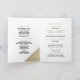 Um elegante, moderno, dourado e branco com tipografia manuscrita dourada impressa. Este convite de Programa de Casamento geométrico glam é a impressão perfeita para o evento de casamento de qualquer noiva e noivo. Personalize este design com seus detalhes e inicial do monograma.