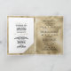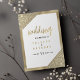 Um elegante, moderno, dourado e branco com tipografia dourada escrita à mão. Este convite do programa de casamento geométrico é o impressão perfeito para qualquer evento de casamento de noiva e noiva. Personalize este design com seus detalhes e monograma inicial.
