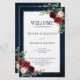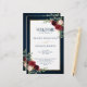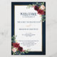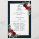 O cartão do programa de casamentos florais, elegante e moderno romântico, com cor de água geométrica, apresenta um belo burgundy / marsala, cor-de-rosa-pincel, pêssego, rosas de cor azul-marinho com folhagem correspondente no fundo azul-marinho da madeira rústica e estrutura dourada. Perfeito para um casamento no outono/no meio do verão. Por favor, encontre mais designs e variações na minha loja de "blisswedingpaperie". E sinta-se à vontade para contactar-me para mais personalizações ou itens correspondentes