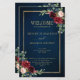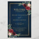 O cartão do programa de casamentos florais, elegante e moderno romântico, com cor de água geométrica, apresenta um belo burgundy / marsala, cor-de-rosa-pincel, pêssego, rosas de cor azul-marinho com folhagem correspondente no fundo azul-marinho da madeira rústica e estrutura dourada. Perfeito para um casamento no outono/no meio do verão. Por favor, encontre mais designs e variações na minha loja de "blisswedingpaperie". E sinta-se à vontade para contactar-me para mais personalizações ou itens correspondentes