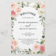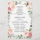 Elegante Programa de casamento botânico floral, cor-de-rosa-pincel/primavera de pêssego, com um buquê de rosas de aquarela pastel macio, pénicas e hipnagas em tons de rosa-pincel, pêssego e creme com folhas botânicas verdes e folhas de eucalipto com estrutura geométrica de ouro. Por favor, encontre mais designs e variações na minha loja de "blisswedingpaperie". E fique à vontade para me contactar para mais personalizações ou itens correspondentes.
