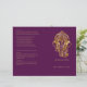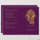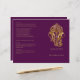 Este design elegante, chamado Casamento Índio Puro e Dourado Brilhante, tem um fundo roxo. Na frente há uma design de borda com estilo dourado com Lord Genesha no centro para afastar quaisquer obstáculos. Na parte inferior está o nome do casal em ouro. O fundo tem um fundo roxo com o seu texto em ouro. Este conjunto tem convites, cartões salve a data, cartões de resposta, cartas de agradecimento, cartões de mesa, rótulos de vinho, programas de casamento, e muito mais peças de papelaria de casamento, favores e presentes para coordenar. Todos os elementos são impressos nos nossos produtos de alta qualidade, não incluem ouro real, joias, gravuras ou outros elementos têxteis. Todos os designs são copyright Noteable Express, Inc. Todos os direitos reservados.