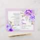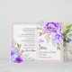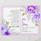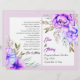 Este programa de casamento é uma bela maneira de mostrar seu dia especial. Tem um adorável design floral com flores de aquarela roxas e sotaques azuis nos cantos. As flores criam um contraste com o quadro branco que contém seu texto. O quadro tem uma borda lilás que corresponde à cor das páginas dentro. As páginas dentro têm texto branco sobre fundo lilático, fazer fácil de ler. Você pode personalizar o texto com seus nomes, data, detalhes da cerimônia e informações da festa. Para usar este programa, basta dobrá-lo no meio e você terá um folheto impressionante que reflete seu estilo e sua personalidade.