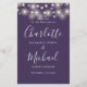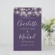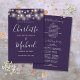 Programa de casamento com caligrafia roxa característico com lindas luzes de corda e tipografia moderna e elegante. Este programa de casamento elegante pode ser personalizado com as informações do seu dia de casamento especial. Concebido por Thisisnotme