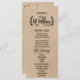Este programa de casamento memorial com caligrafia kraft rústica é perfeito para um casamento moderno. O design apresenta uma tipografia divertida e manuscrita com laços e espirais encantadores, rodeada por uma simples coroa de ramo de oliveira. Inclua o nome da noiva e do noivo, a data e local do casamento, mensagem de agradecimento, ordem de serviço e a festa de casamento e uma homenagem aos entes queridos.