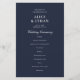 Adicione um toque de elegância refinada ao seu dia especial com nosso Cartão de Programa de Casamento Azul Marinho. Na frente, exiba o nome do casal e um itinerário detalhado da cerimônia de casamento, mantendo seus convidados engajados em cada momento precioso. O verso homenageia os membros da sua comitiva de casamento e inclui um espaço para personalizar sua mensagem de agradecimento sincero. Projetado em um clássico azul marinho, este cartão de programa é perfeito para casamentos elegantes, combinando estilo e sentimento. Crie uma impressão duradoura — personalize o seu hoje mesmo na Zazzle!