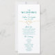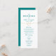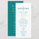 Tipografia, minimalista, programa de casamento moderno de dupla face branco e verde-teal com coração de corda dourada e letra manuscrita simples.