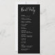 Faça uma declaração marcante em sua cerimônia com o Programa de Casamento Minimalista Moderno e Elegante Preto, cuidadosamente projetado para casais que abraçam a simplicidade ousada e o estilo refinado. Com texto branco limpo sobre um fundo preto rico, este programa oferece um layout elegante e sofisticado que apresenta claramente os detalhes da sua cerimônia, festa de casamento e toques pessoais. Ideal para casamentos modernos, formais ou com tema monocromático, seu design minimalista garante legibilidade e adiciona um elemento polido à sua celebração. Totalmente personalizável e impresso em papel cartão de alta qualidade, este programa de casamento combina elegância e função para manter seus convidados informados e impressionados.