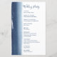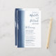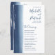 Programa de casamento moderno e criativo com um simples design com um marinho azul de pincelada d'água no lado esquerdo, sobre um fundo branco. Adicione os eventos da sua cerimônia à frente e à sua festa de casamento atrás. Este design único é excelente para um casal artístico. Estes programas de casamento baratos são impressos em folhas de papel para uma opção econômica.