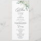 Guie seus convidados através do seu dia especial com nosso Programa de Casamento de Folhagens Modernas Esmeralda. Com um deslumbrante design de aquarela de folhas de eucalipto e delicadas flores de jasmim, este programa elegante complementa perfeitamente um tema de casamento de folhagens ou aquarela. Com um layout limpo e moderno, oferece uma maneira elegante de compartilhar detalhes da cerimônia, ordem dos eventos e notas especiais, garantindo que seus convidados se sintam incluídos em cada momento.