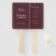 Mantenha seus convidados frescos e informados com este lindo leque de mão para programa de casamento moderno em burgundy. Com um layout minimalista limpo combinado com tons ricos de burgundy, este leque de mão combina elegantemente sofisticação moderna com romance atemporal. É a maneira perfeita de exibir os detalhes da sua cerimônia, cortejo e ordem dos eventos, adicionando um toque elegante e prático ao seu dia especial.