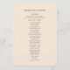 Creme moderno com texto castanho, programa de casamento unilateral personalizado com os nomes da noiva e do noivo e sua data de casamento, juntamente com a agenda da cerimônia. Personalizado no verso com a lista do partido noiva.