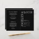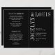 Programa moderno de casamento dobrado (impresso em papel e desdobrado) com um design preto minimalista com seus nomes em uma fonte grande ao longo do lado esquerdo e superior. Esta design é simples o suficiente para um casamento formal, mas faz uma declaração ousada.