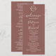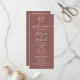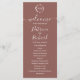Um simples e elegante programa de casamento em terracota com monograma de folhas em falso foil. Fácil de personalizar com seus detalhes. Programa de casamento moderno boho editável, convite de casamento com foto de guirlandas, personalizável, fonte manuscrita caligrafada, simples, elegante.