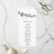 Este cartão permite descrever sua festa de casamento de um lado, e seu programa de cerimônia de casamento do outro. Personalize se você precisar adicionar linhas extras de texto. Apresentando uma clave de três negros, funcionarios musical e notas de música em um fundo branco.