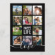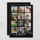 Inclua 11 das suas fotos de casal favoritas para esta de um tipo de programa de casamento com as palavras "VIDA FELIZ" e amor na fonte do roteiro na frente. O verso contém todos os detalhes do seu programa de casamento para seus convidados.