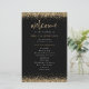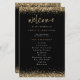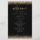 Dourado Programa de Casamento Negro Confetti. Tamanho de 5,5" x 8,5" a um preço orçamentário, este design elegante tem bordas de ouro com brilho falso em cada lado. Bem-vindo está em um script de estilo manual informal definido e o resto das palavras que você pode personalizar facilmente.