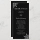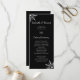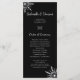 Anuncie a ordem de sua cerimônia de casamento em suas núpcias de dezembro, janeiro ou fevereiro com o elegante Programa de Casamento no inverno de Flocos de Neve Pretos e Brancos. Este clássico programa de cerimônias personalizado de Maravilha de inverno com tema de cerimônia apresenta intrincados designs brancos com flocos de neve nos cantos com fundo preto.