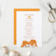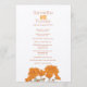 Flor de laranja do crisântemo de dupla face sobre fundo branco e um lado sobre um programa de casamento de fundo laranja. Conjunto de papéis de carta de desenho botânico floral. Edite este programa de casamento com seu próprio nome, datas, texto da cerimônia, assistentes de festa de casamento e obrigados. Um programa simples, mas elegante, simplesmente substitua o texto de amostra por seus detalhes de casamento. Um programa ideal de cerimônia floral de outono. Desenho e design por Sarah Trett para www.mylittleeden.com e www.mylittleedenweddings.com