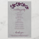 Estes programas de casamento são elegantes e saborosos, enquanto ainda são favoráveis ao orçamento. A design pintada manualmente de aquarela apresenta uma espiga de folhas magenta ou púrpura de ameixa em fundo de cinza marmoreado. A tipografia apresenta uma caligrafia antiga em script, e há espaço para detalhes sobre a cerimônia, a festa noiva e um obrigado curto para você.