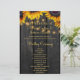 Elegante modelo do programa de cerimônias de bodas rusticais apresentando belos buquês laranja-amarelos brilhantes e cordas de luzes cintilantes em um país de fundo de madeira marrom-escuro. +++++++++++ + Personalize-o com os seus detalhes.++++++++ Adequado para jardim de verão quic de vintagem de países russos | outono caem no exterior.