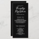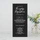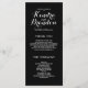 Programas de Casamento Elegante. Texto branco sobre fundo preto. Design por Elke Clarke © Disponível em www.zazzle.com/monogramgallery. Personalize com sua cor de fundo e todas as suas informações pessoais para criar um programa simples, mas sofisticado, que seus contínuos podem distribuir enquanto seus convidados entram na igreja ou estão sentados onde a cerimônia ocorrerá. Ajuda as pessoas a seguirem-se durante a cerimônia, mas também atua como guardiã dos seus hóspedes. Você pode usar os campos modelo para preencher as informações sugeridas sobre a festa de casamento e a ordem do serviço e o obrigado que você envia ou selecionar "personalizar" e usar o menu editar para alterar o espaçamento de texto, as fontes, as cores conforme desejar criar seus próprios programas de casamento.
