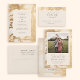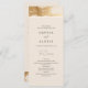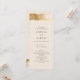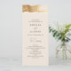 Mantenha seus convidados informados com este cartão do programa de casamento. Seu design moderno minimalista apresenta cor de creme bege, um fundo de cor d'água de abstrato ouro com sotaques falsos de ouro e detalhes abrangentes do programa de casamento em ambos os lados para um evento memorável.