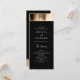 Guie seus convidados com graça usando nosso cartão do programa de casamento. A tipografia minimalista chic brilha contra uma canvas de aquarela escura enfeitiçada com sotaques de ouro falsos. A camada preta mostra graciosamente os detalhes do programa de casamento de ambos os lados.