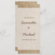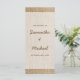 Um programa de casamento com o tema country com um design de burlap impresso.