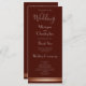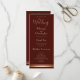 Um elegante e moderno programa de casamento rico e burgundy com duas listras de ouro rosa na parte inferior da carta. A cerimônia e os obrigados de casamento foram incluídos na frente do programa, enquanto todos os festas de noiva foram incluídos no verso.