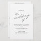 Programa de Casamento Simples com "o casamento de" na caligrafia juntamente com os detalhes do seu casamento em preto e branco. A parte de trás tem sua ordem de cerimônia, festa de casamento e obrigado. Um design minimalista com tipografia quic para um toque elegante.