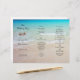 Água tropical oceânica e areia de praia triplicam o programa de casamento. Dobre este papel em três após a compra. Texto preto com duas estrelas do mar realistas para representar o casal. Depois de dobrar, como um acordeão, a seção esquerda será a frente. O centro será a ordem da cerimônia com o lado direito listando os membros festas de casamento, oficiais e outras pessoas importantes.