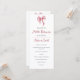 Programa de comemoração da quinceañera, um arco rosa bonito. O cartão tem um arco cor-de-rosa no topo e todas as informações pertinentes na frente e atrás do cartão. Ilustrada e projetada por Patricia Alvarez.
