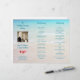 Programa de cerimônia de casamento na praia para dobrar em terços, com modelo de foto e flores de plumeria. Água turquesa e texto correspondente sobre uma imagem de areia de praia com foto quadrada do casal, que estará na frente deste programa dobrado. **Por favor, note que o verso deste papel será branco - nada pode ser adicionado ao verso.