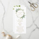 Este programa de casamento apresenta folhagem de eucalipto pintada em aquarela, folhas verdes com uma moldura circular dourada. Para personalização mais avançada deste design, clique no link "Personalizar ainda mais". Itens correspondentes também estão disponíveis.