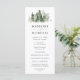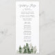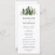 Elegante programa de casamento rústico com seus nomes e detalhes de casamento com uma floresta de caçadores escuros verde e pinheiros com aquarela. Personalize os programas de casamento do outono adicionando sua data e local do casamento, ordem dos eventos e festa de casamento no verso. Projetado para coordenar com a nossa coleção de casamento Rustic Pine Forest.