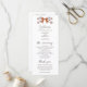 Coquete e programa de casamento rústico com ilustração desenhada à mão de arcos e flores marrons de terracota. Todas as informações da cerimônia de casamento e o nome da festa de casamento listados neste programa.